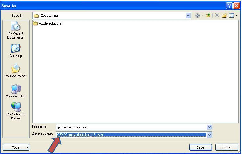 You now have a .csv file that can be loaded directly onto Geocaching.com.