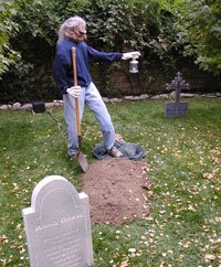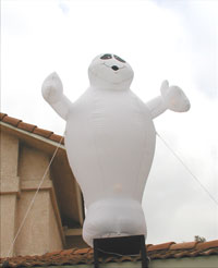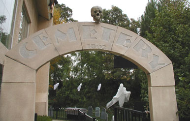 our rooftop 8' ghost welcoming everyone to the graveyard.
