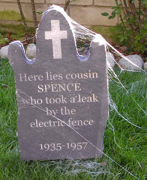 carved tombstones. The spider webs are from a hot glue gun shooter.