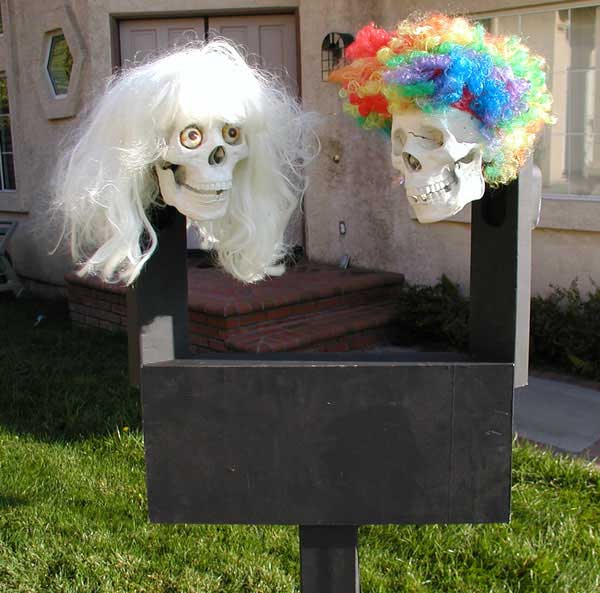 Welcome to my haunted yard for 2004. This year we added some new props including a "rotating tunnel that you walk through" and modified some of the older props. Enjoy. Click on the pictures for a larger image |